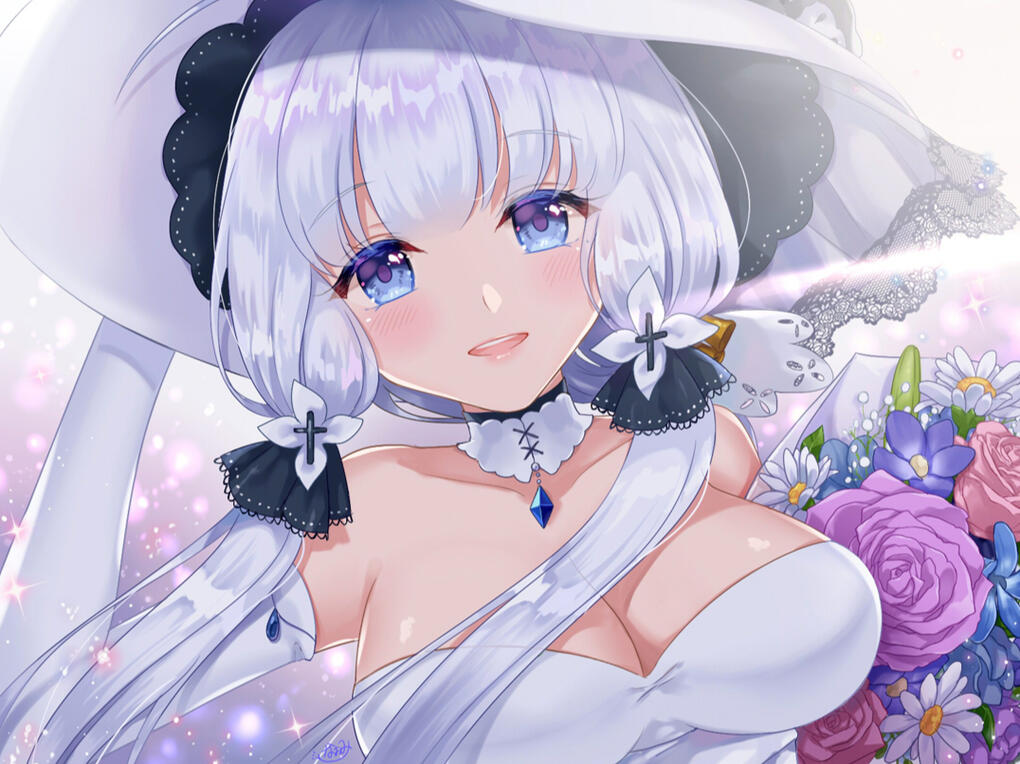 Known for her winsome physical features, added with her sophisticated sense of fashion, Meliora is always seen as one beguiling maiden. Her curvaceous figure always entice those around her. A beauty mark under her left eye marked her beauty, for sure. The front parts of her white hair are always tied with two black ribbons, adorned with flowers as its ornaments. On the other hand, the back part of her hair is frequently secured with an elegant black and white ribbon.The attire of her choice usually consists of white resplendent dress, completed with intricate details consisted of ribbons and ruffles. Having sapphire gems as the bijouterie which matches her eyes, plus the deluxe white gloves, her opulent fashion is always in the middle of the spotlight. Sumptuous black and white hat is her crown, embellished with ruffles which she really loves.