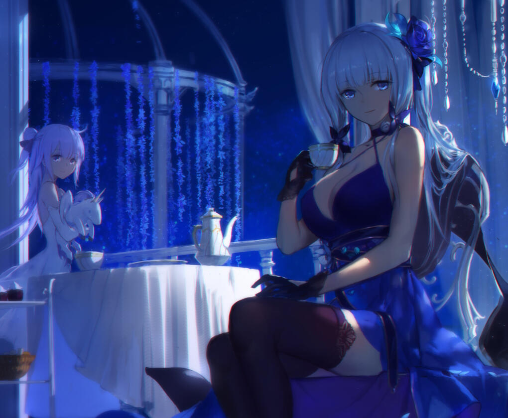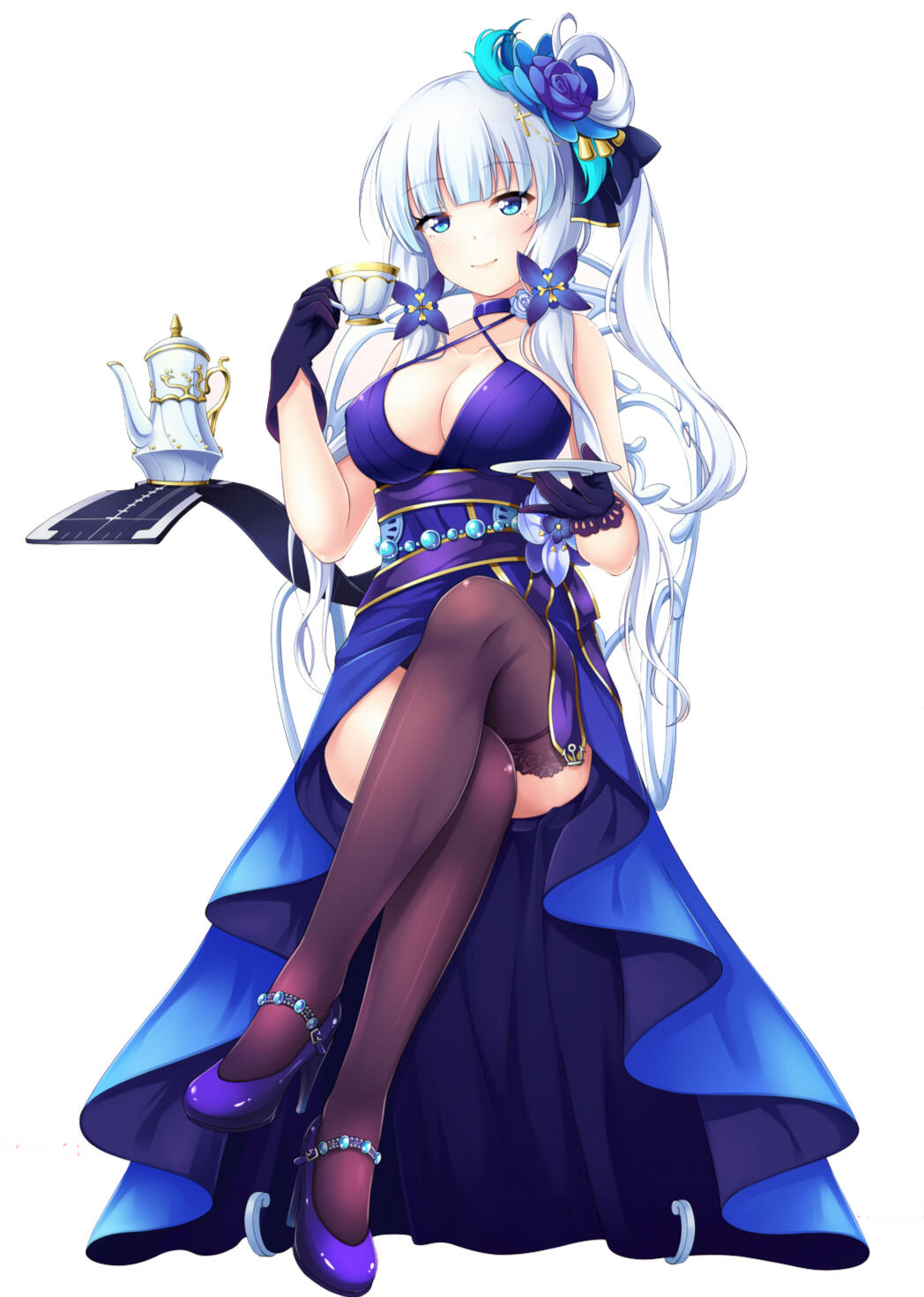 During battles, she'll always go with her dark-colored dresses, mostly dark blue. Lavish flower and ribbon will replace her pretentious black and white hat, securing her silky hair.On certain occasions, she might prefer to wear casual clothes. Without her signature hat and gloves, she'll go with a set of apparel consists of blue, white, and black in terms of color, her favorite colors of choiceWhenever she has to fulfill her role as a gymnast, lavish white or blue leotards will be her choice. Not forgetting to tie her hair in a high bun.