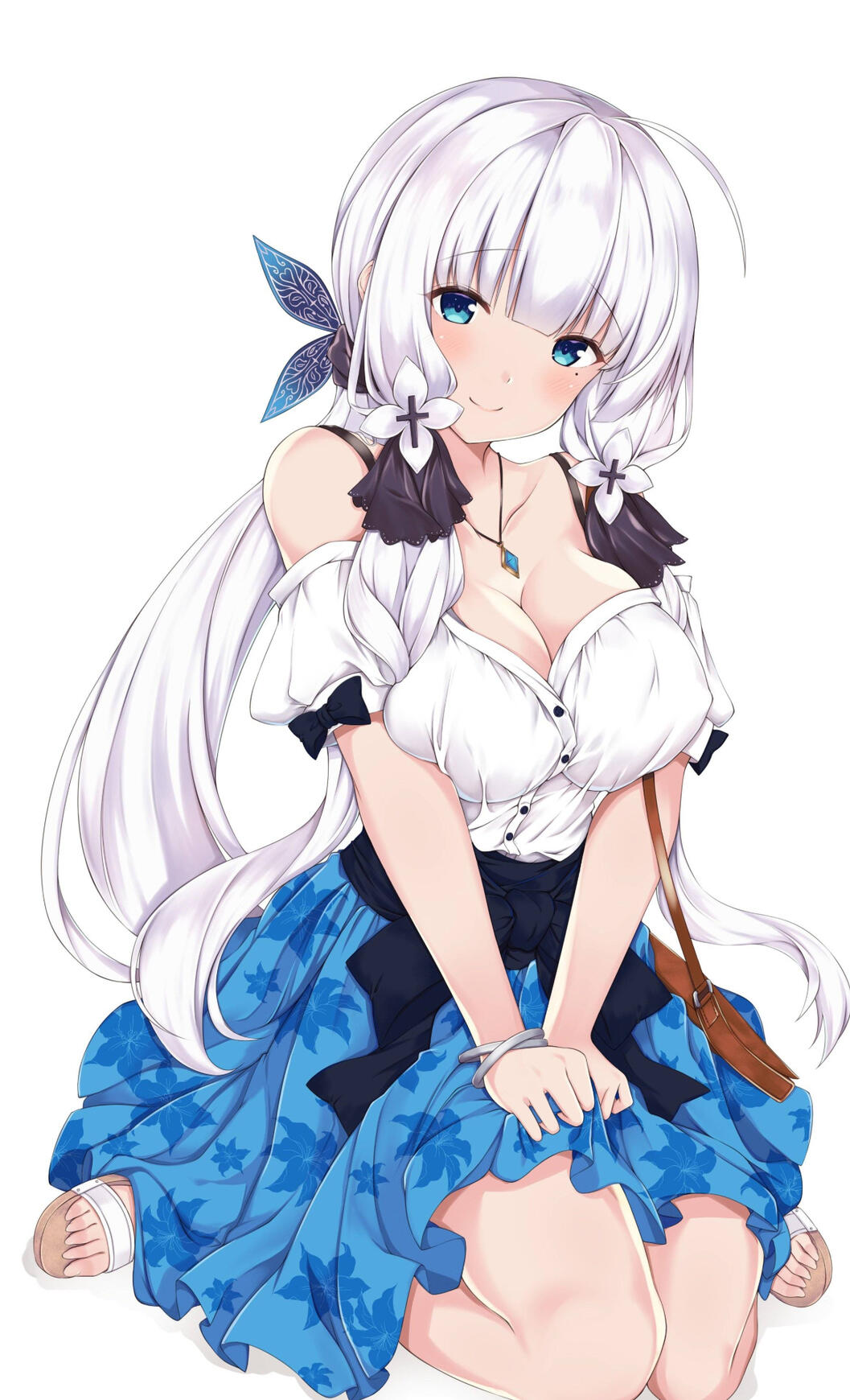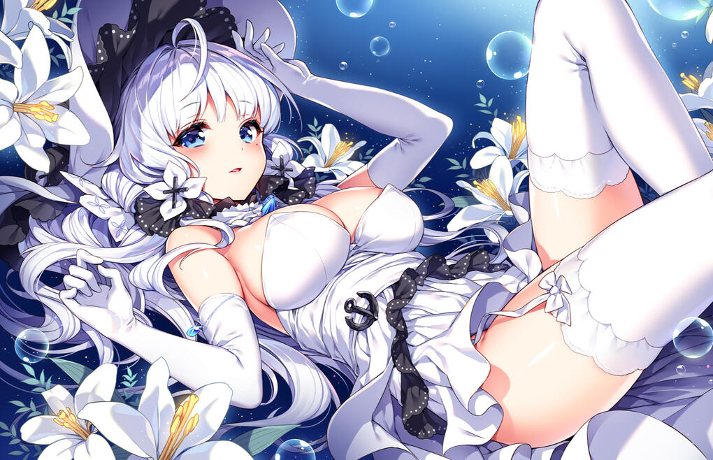 Known for her winsome physical features, added with her sophisticated sense of fashion, Meliora is always seen as one beguiling maiden. Her curvaceous figure always entice those around her. A beauty mark under her left eye marked her beauty, for sure. The front parts of her white hair are always tied with two black ribbons, adorned with flowers as its ornaments. On the other hand, the back part of her hair is frequently secured with an elegant black and white ribbon.The attire of her choice usually consists of white resplendent dress, completed with intricate details consisted of ribbons and ruffles. Having sapphire gems as the bijouterie which matches her eyes, plus the deluxe white gloves, her opulent fashion is always in the middle of the spotlight. Sumptuous black and white hat is her crown, embellished with ruffles which she really loves.